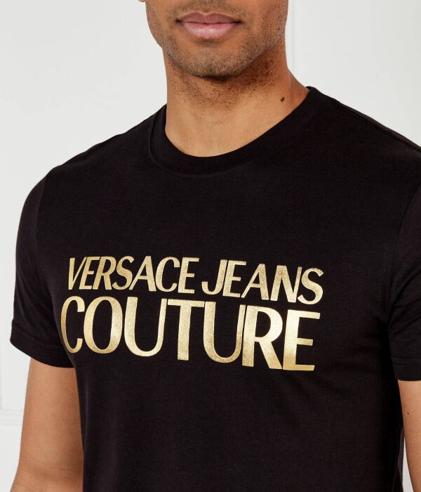 Футболка мужская Versace Jeans Couture облегающего кроя с золотым принтом, черный