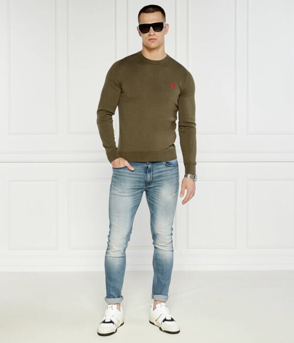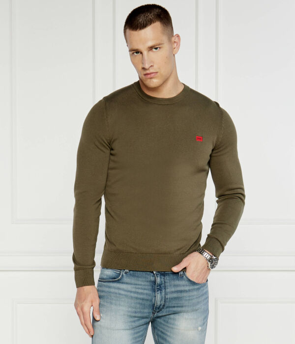 Джемпер мужской Hugo с нашитым логотипом однотонный, зеленый