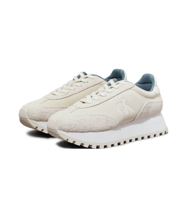 Кроссовки кожаные Calvin Klein Jeans с логотипом, бежевый