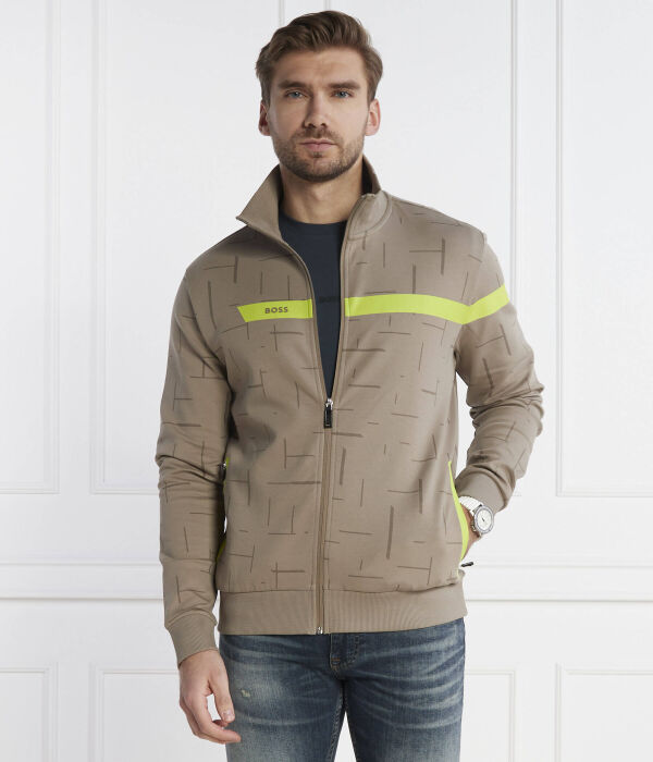 Толстовка мужская Boss Green на молнии с принтом, бежево-зеленый