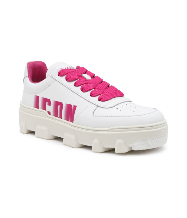 Кроссовки женские Dsquared2 кожаные на платформе, белый/розовый