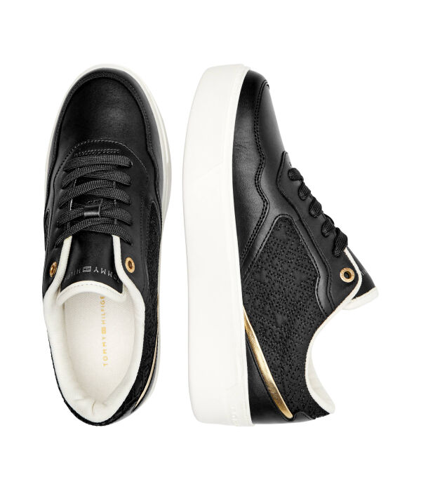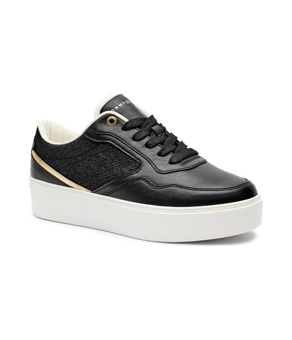 Кроссовки женские Tommy Hilfiger кожаные комбинированные на платформе, черный