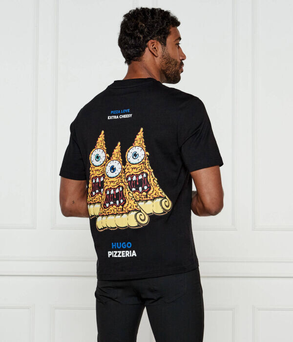 Футболка мужская Hugo Blue с изображением пиццы, черный
