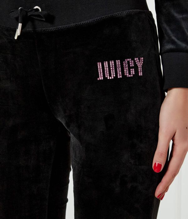 Спортивные брюки женские Juicy Couture бархатистые со стразами, черный