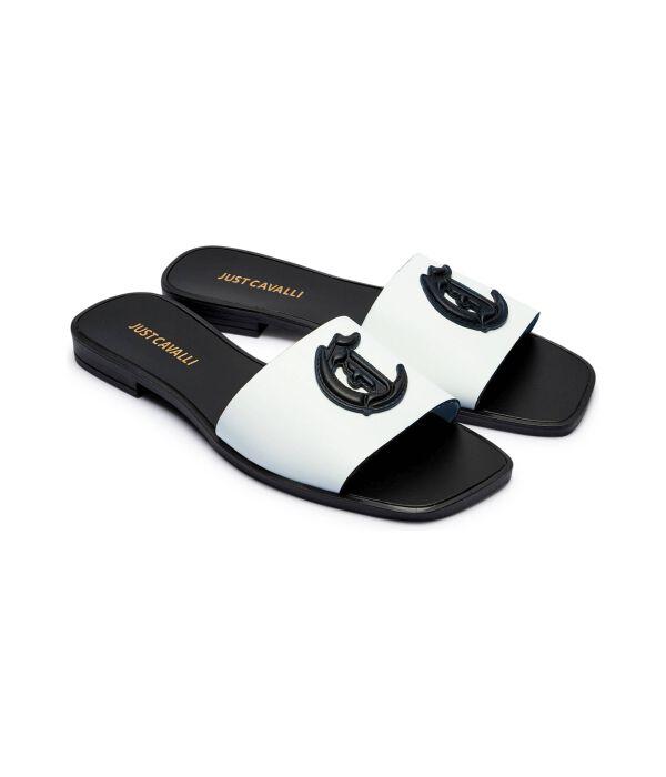 Шлепанцы-пантолеты женские Just Cavalli кожаные с пряжкой-монограммой, белый