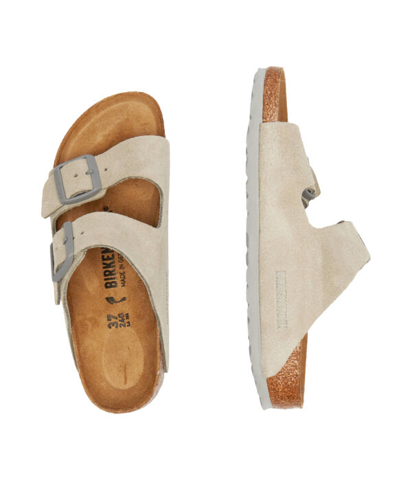Тапочки кожаные Birkenstock Arizona с застежками, бежевый