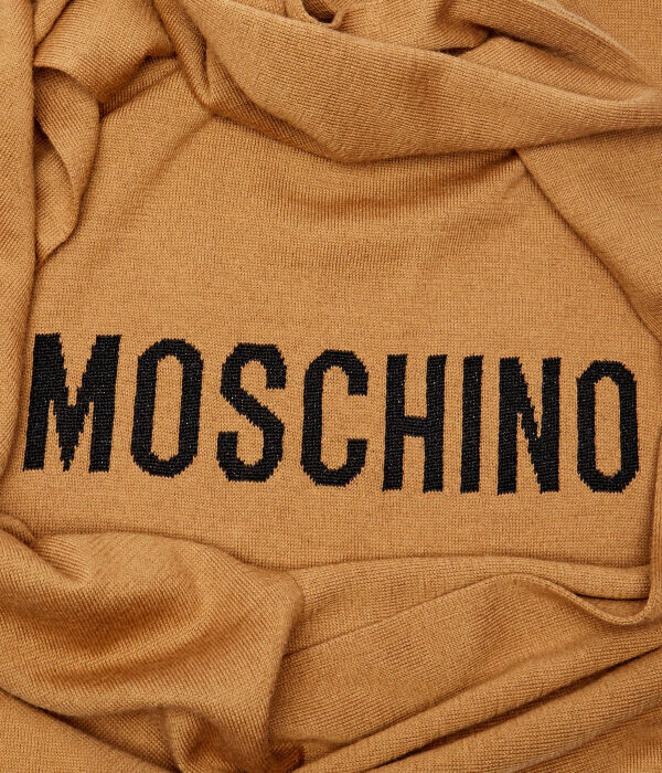 Шарф женский Moschino полушерстяной с логотипом бренда, коричневый