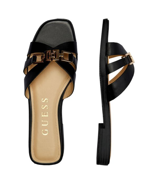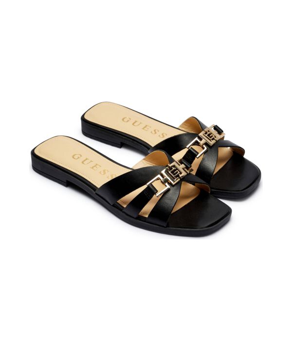 Пантолеты-шлепанцы женские Guess кожаные с монограммой, черный