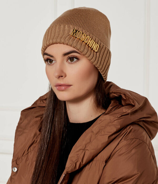 Шапка женская Moschino шерстяная с логотипом, коричневый
