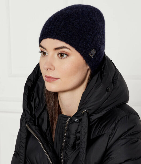 Шапка женская Tommy Hilfiger из шерсти альпаки с монограммой, синий