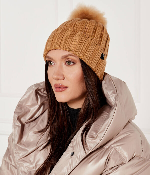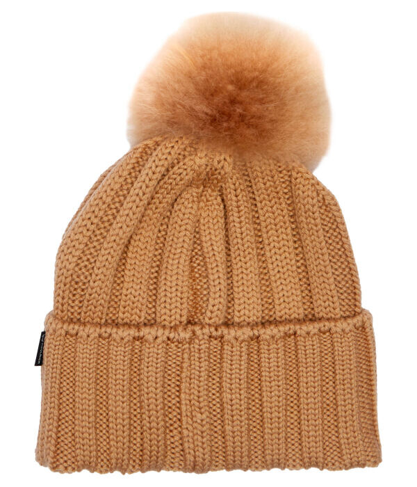 Шапка женская Woolrich шерстяная с помпоном, коричневый