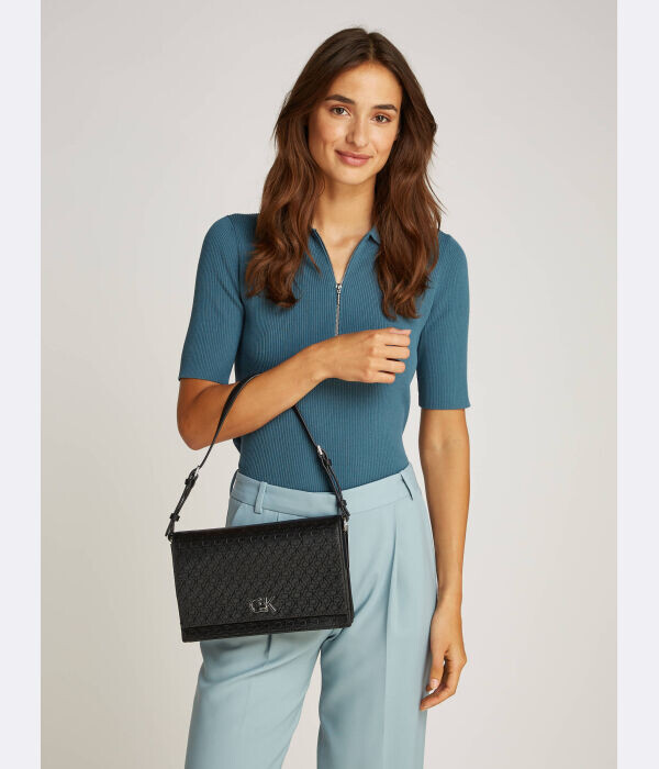 Сумка женская Calvin Klein на плечо с тиснением из монограмм, черный