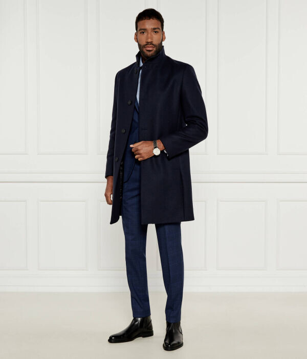 Пальто мужское Hugo шерстяное с воротником-стойкой, синий