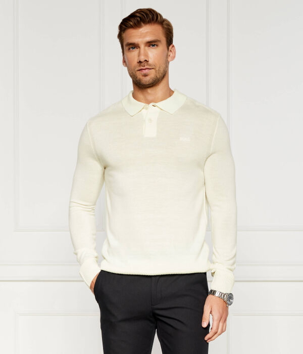 Поло мужское Boss Orange шерстяное облегающего кроя, экрю