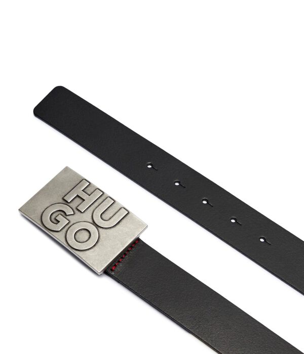 Ремень мужской Hugo кожаный с логотипом на пряжке, черный