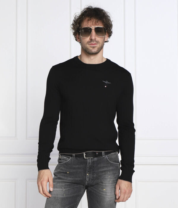 Свитер шерстяной Aeronautica Militare Regular Fit, черный