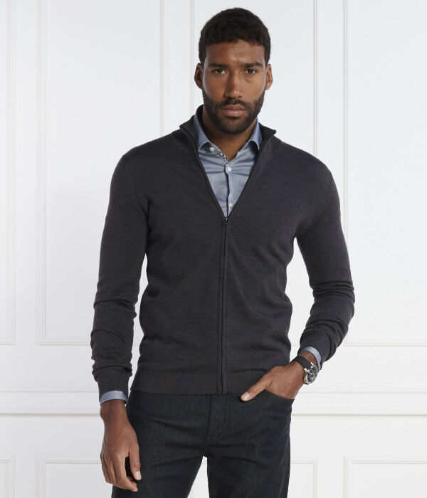 Кардиган мужской Hugo на молнии шерстяной, черный