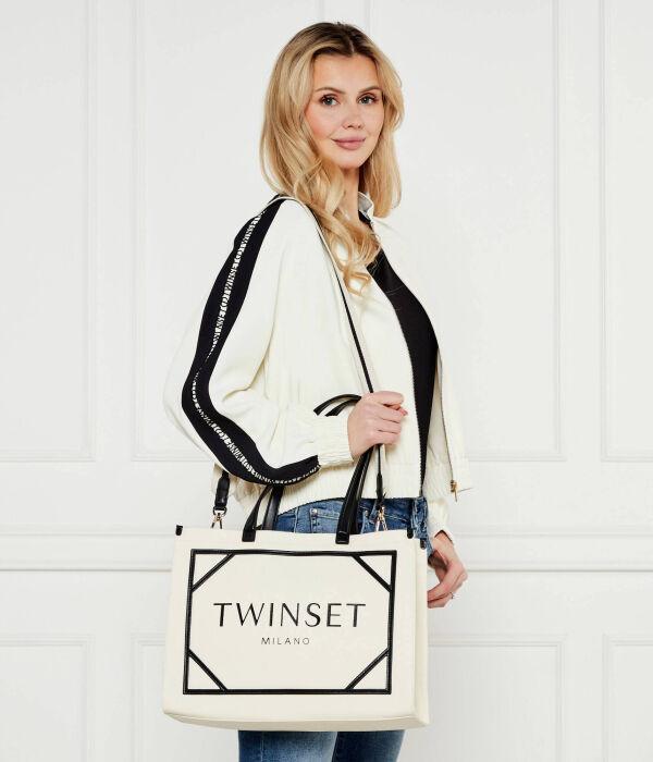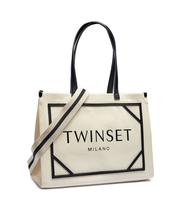 Сумка шоппер Twin-Set текстильная с принтом, экрю
