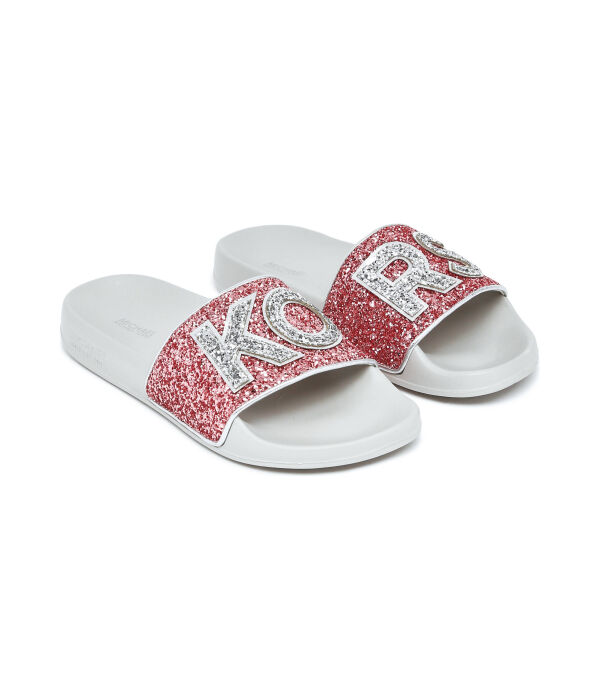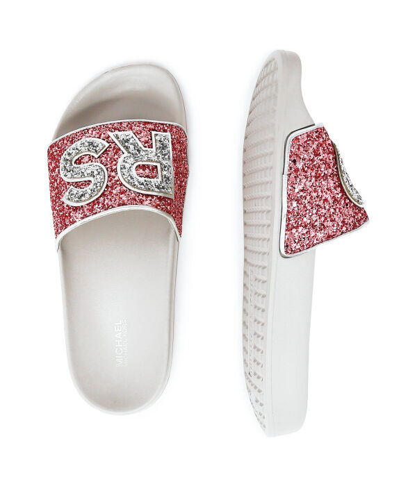 Шлепанцы женские Michael Kors блестящие, белый/розовый
