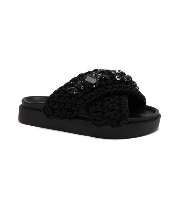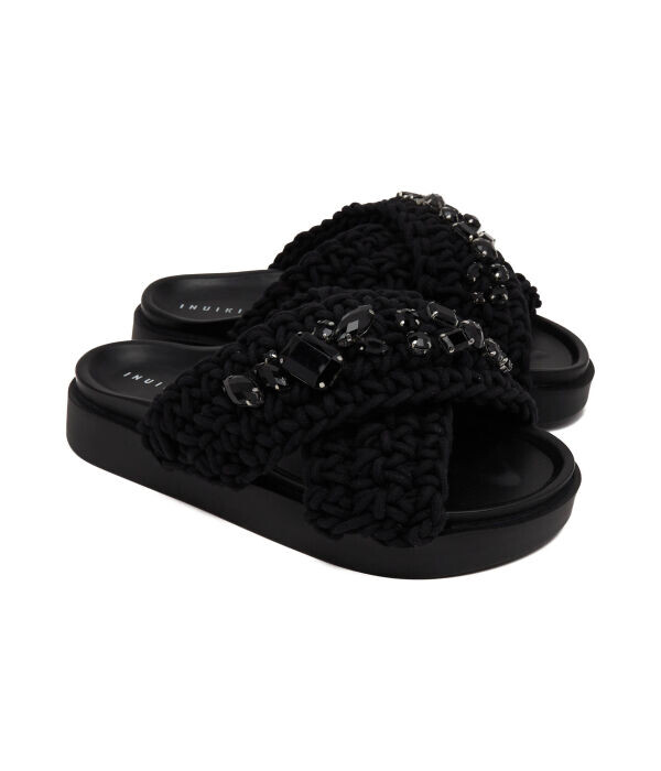 Шлепанцы женские Inuikii декорированные камнями, черный