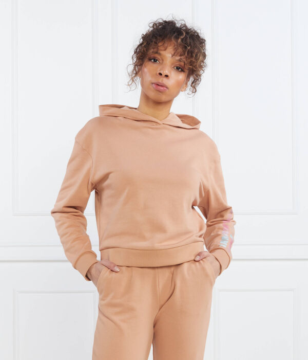 Толстовка женская Armani Exchange с капюшоном и принтом на рукаве, бежевый