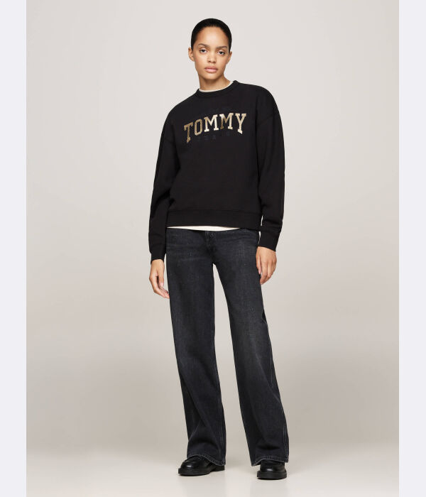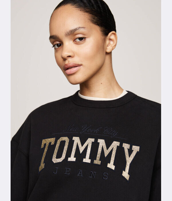 Толстовка женская Tommy Jeans свободного кроя с золотым логотипом, черный