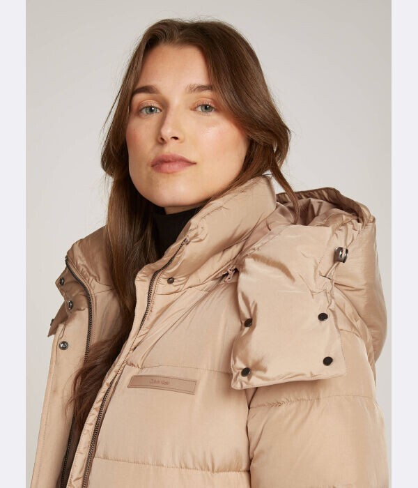 Куртка женская Calvin Klein длинная стеганая с капюшоном, бежевый