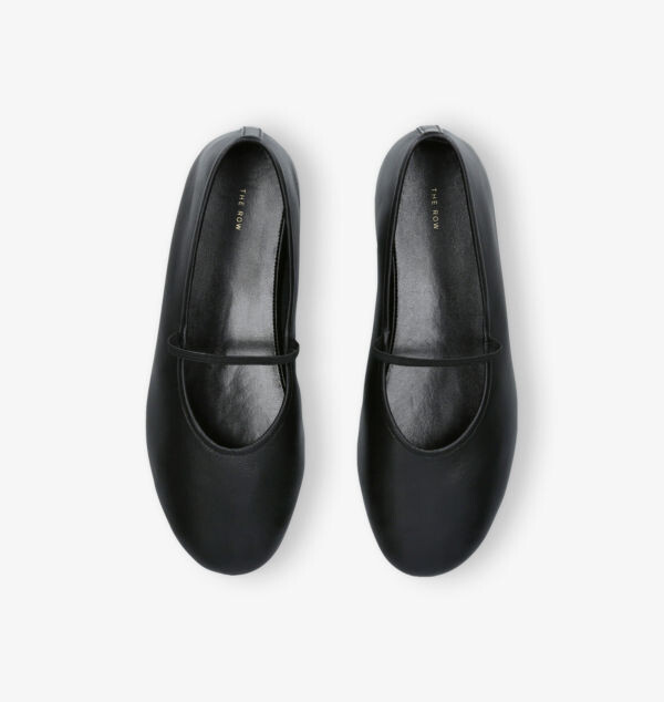 Эластичные кожаные балетки с круглым носком The Row, черный