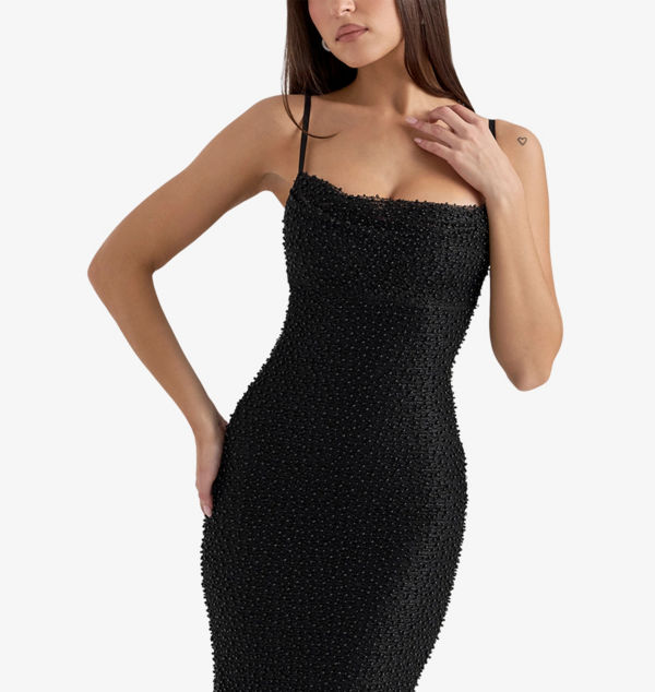 Платье макси из сетки с жемчугом Calla House Of Cb, черный