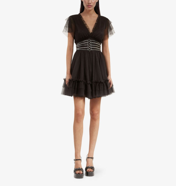 Мини-Платье из тюля с V-образным вырезом The Kooples, черный 42 045₽