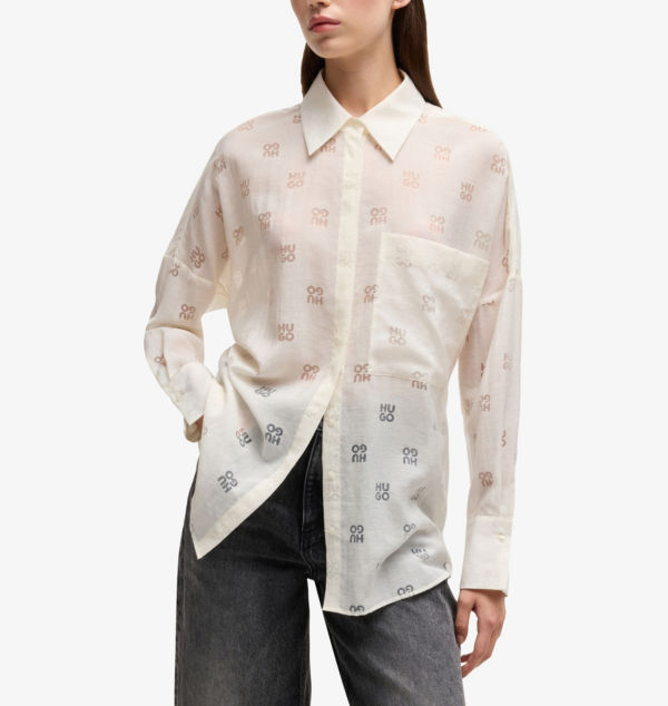 Рубашка свободного кроя Brand-Devoré из тканого материала Hugo, бежевый 31 389₽