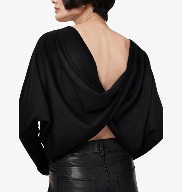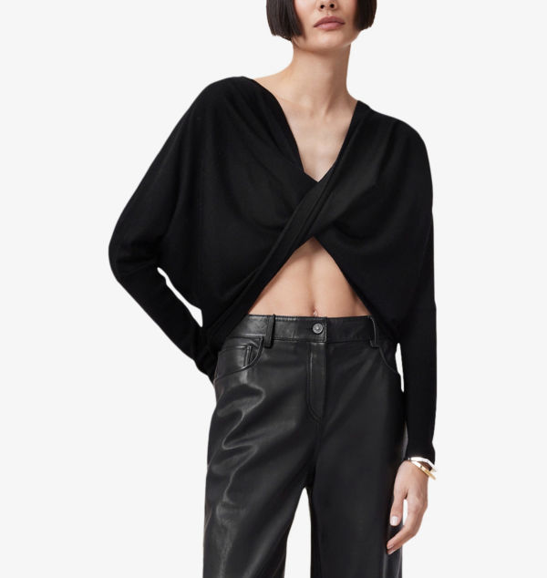 Свободный шерстяной джемпер с запахом Allsaints, черный