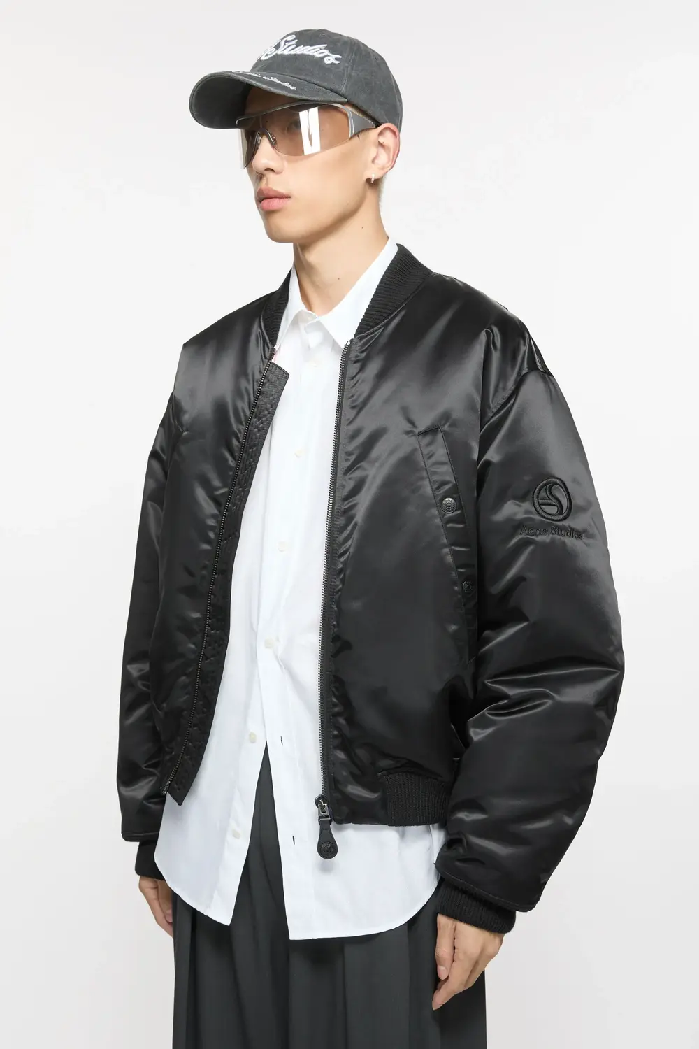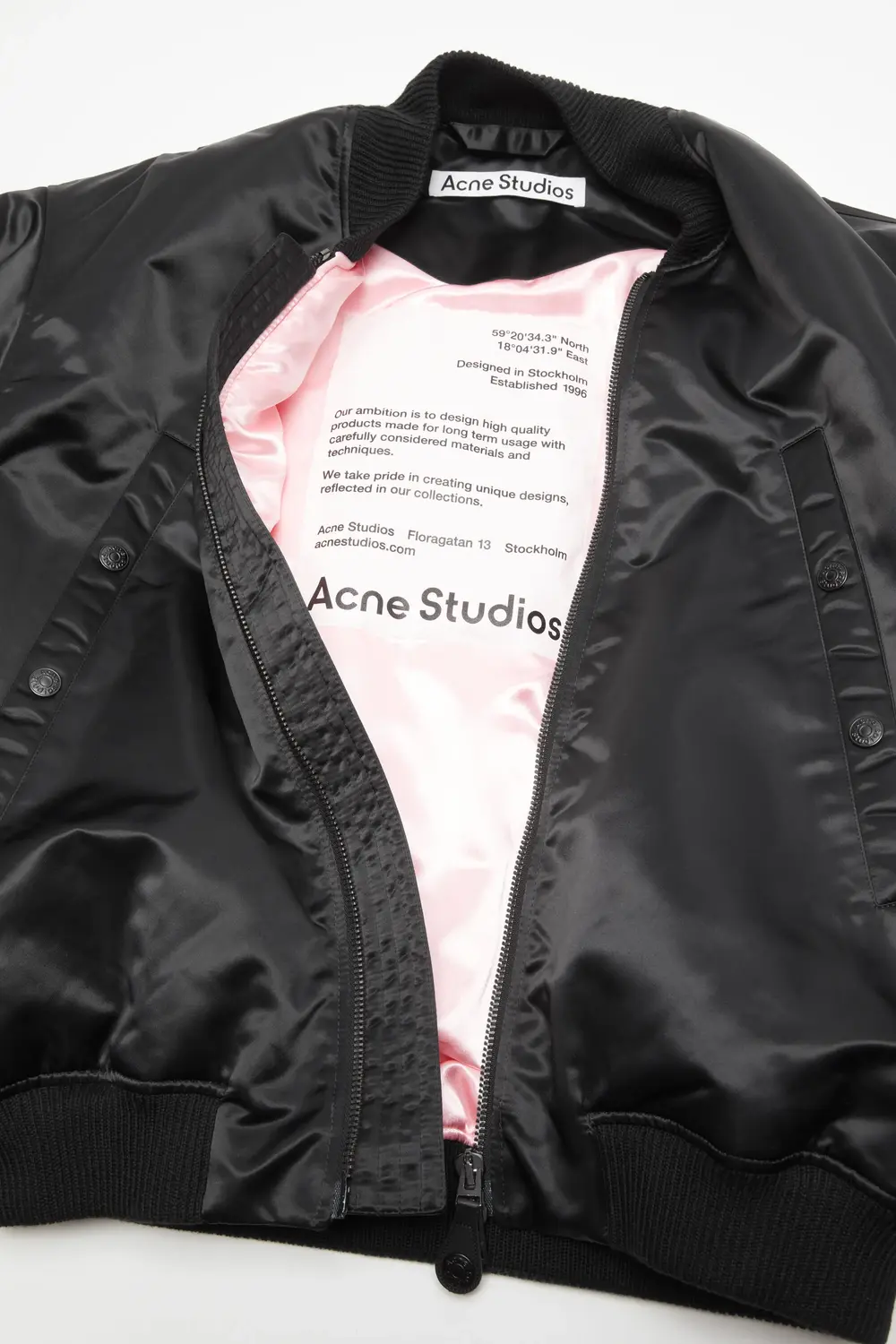 Куртка-бомбер из технического нейлона, украшенная сезонной вышивкой с логотипом Acne Studios. В комплекте застежка-молния в 2 направлениях и передние карманы. Обрезайте по размеру.