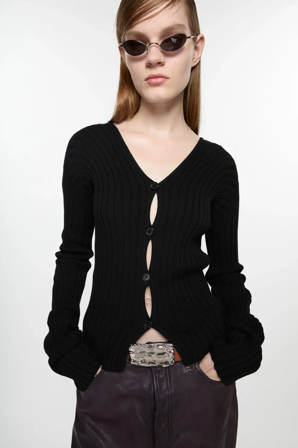 Кардиган на пуговицах в рубчик Acne Studios, черный
