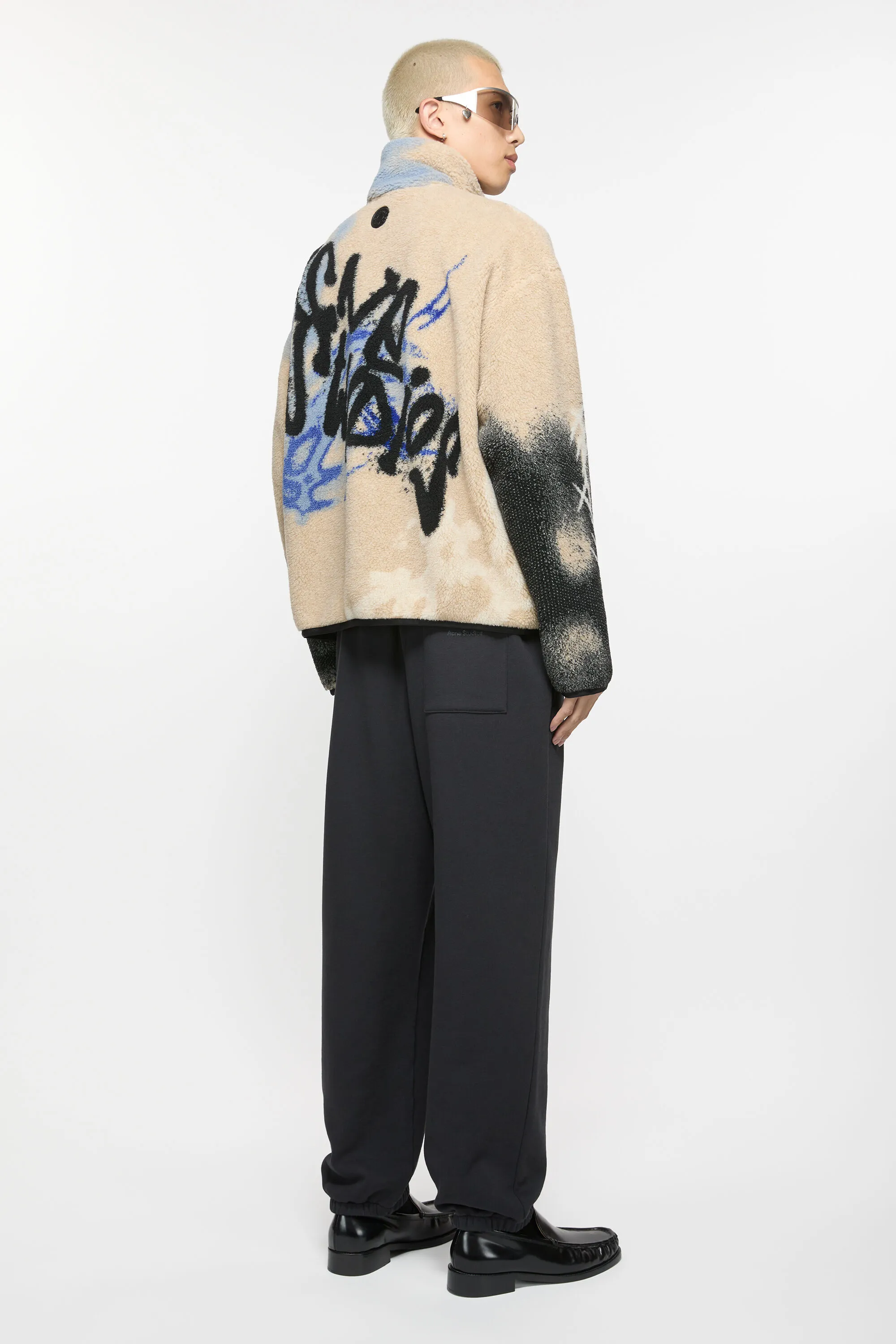 Спортивные брюки из джерси — это детали с нашивкой с логотипом Face спереди и принтом логотипа Acne Studios на заднем кармане. Крой до обычного унисекс кроя с эластичным поясом, прямой штаниной и длинной длиной.