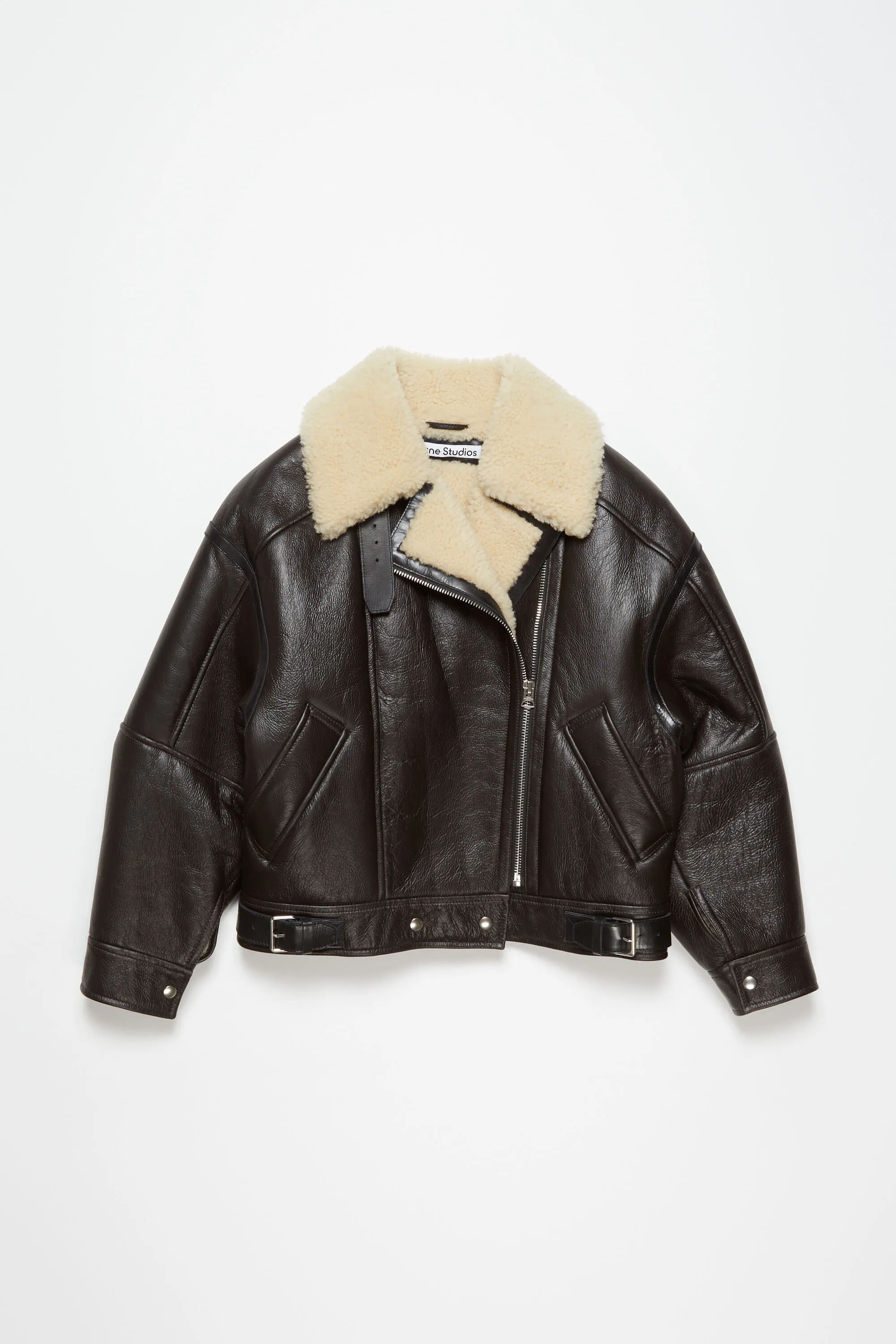 Кожаная куртка из овчины Acne Studios, темно-коричнево-бежевый