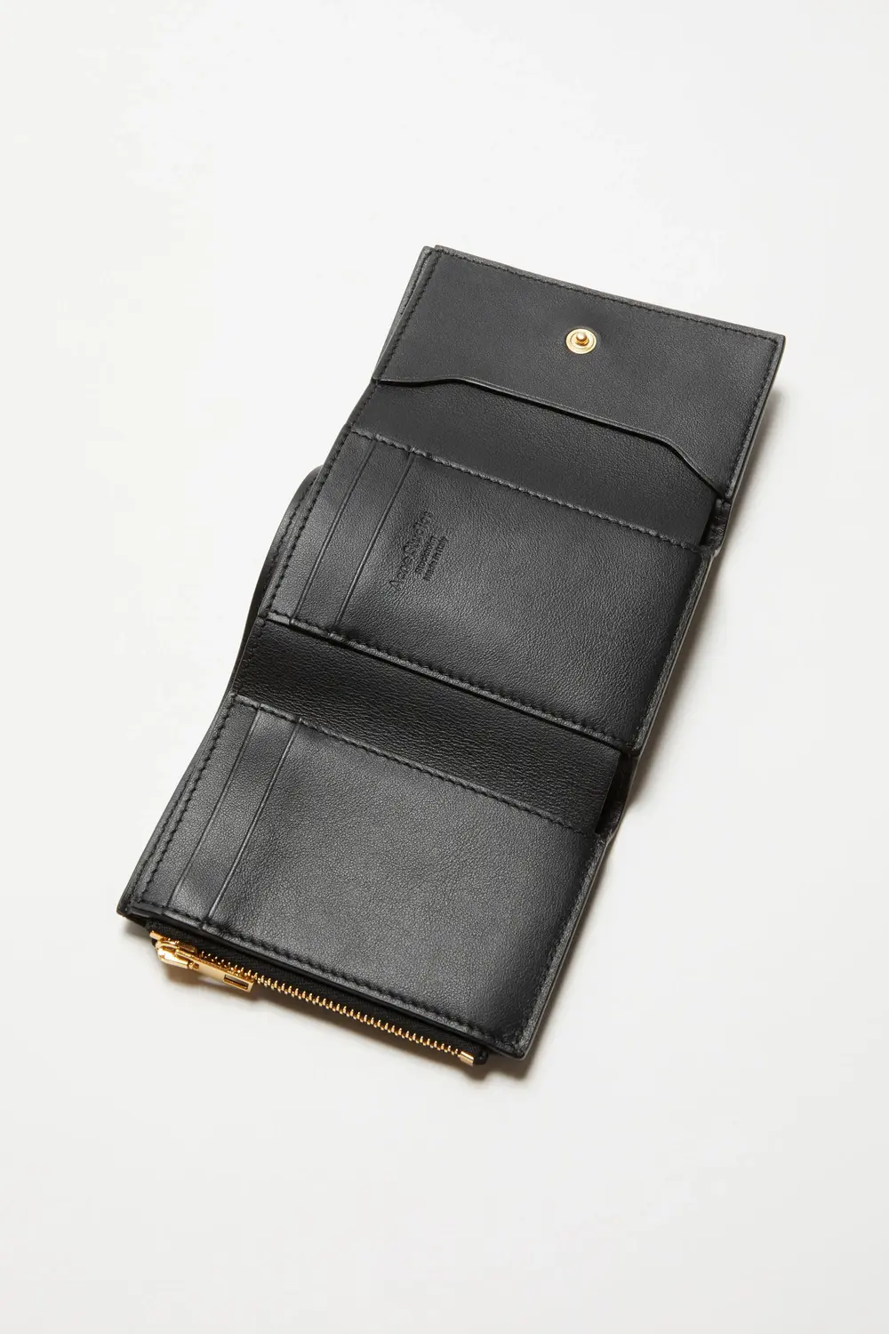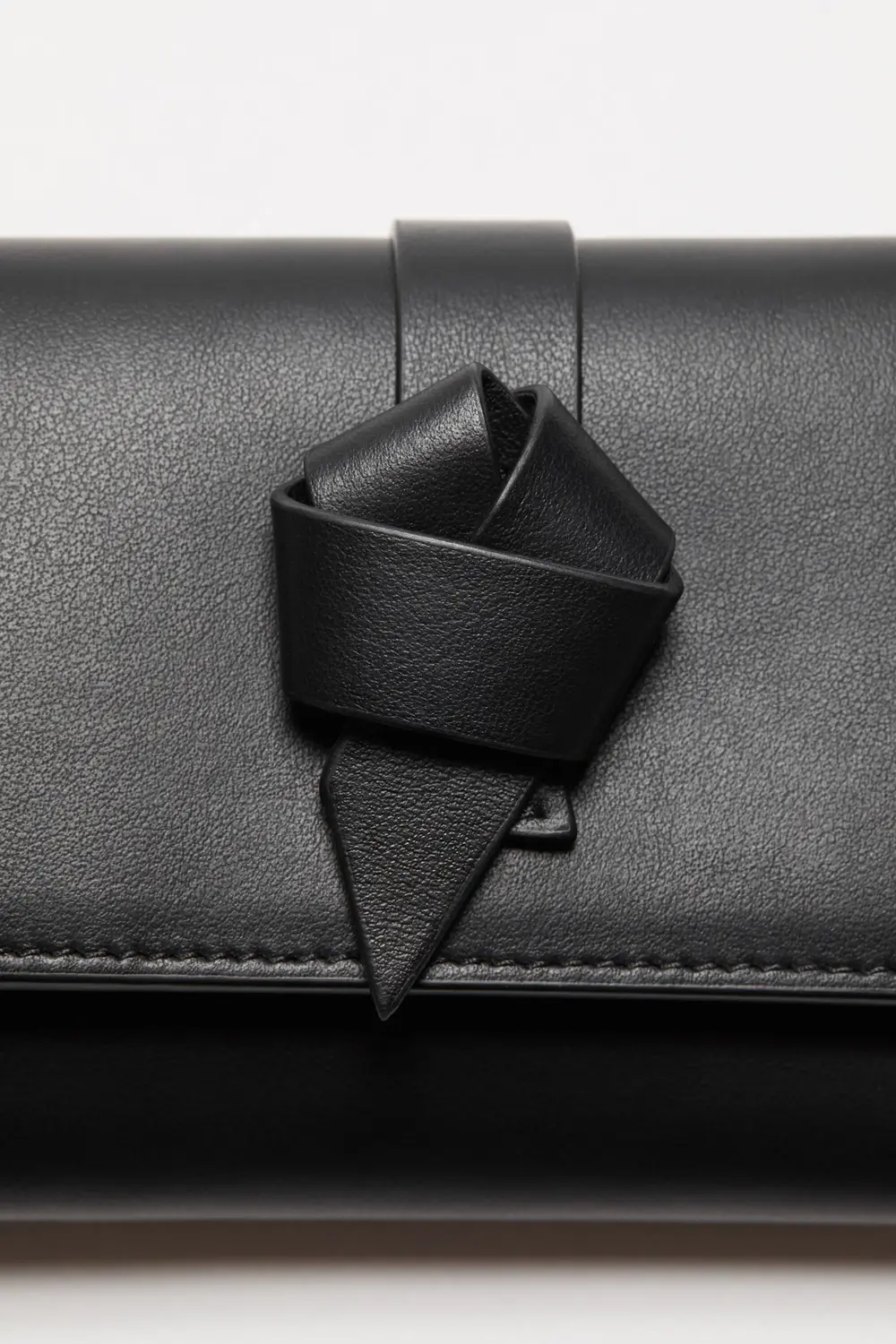 Кошелек Trifold изготовлен из кожи и украшен витым узлом мусуби спереди, вдохновленным традиционными японскими поясами оби. В комплекте с держателями для карт и отделением для монет. Детализирован штампом с логотипом Acne Studios внутри кошелька.