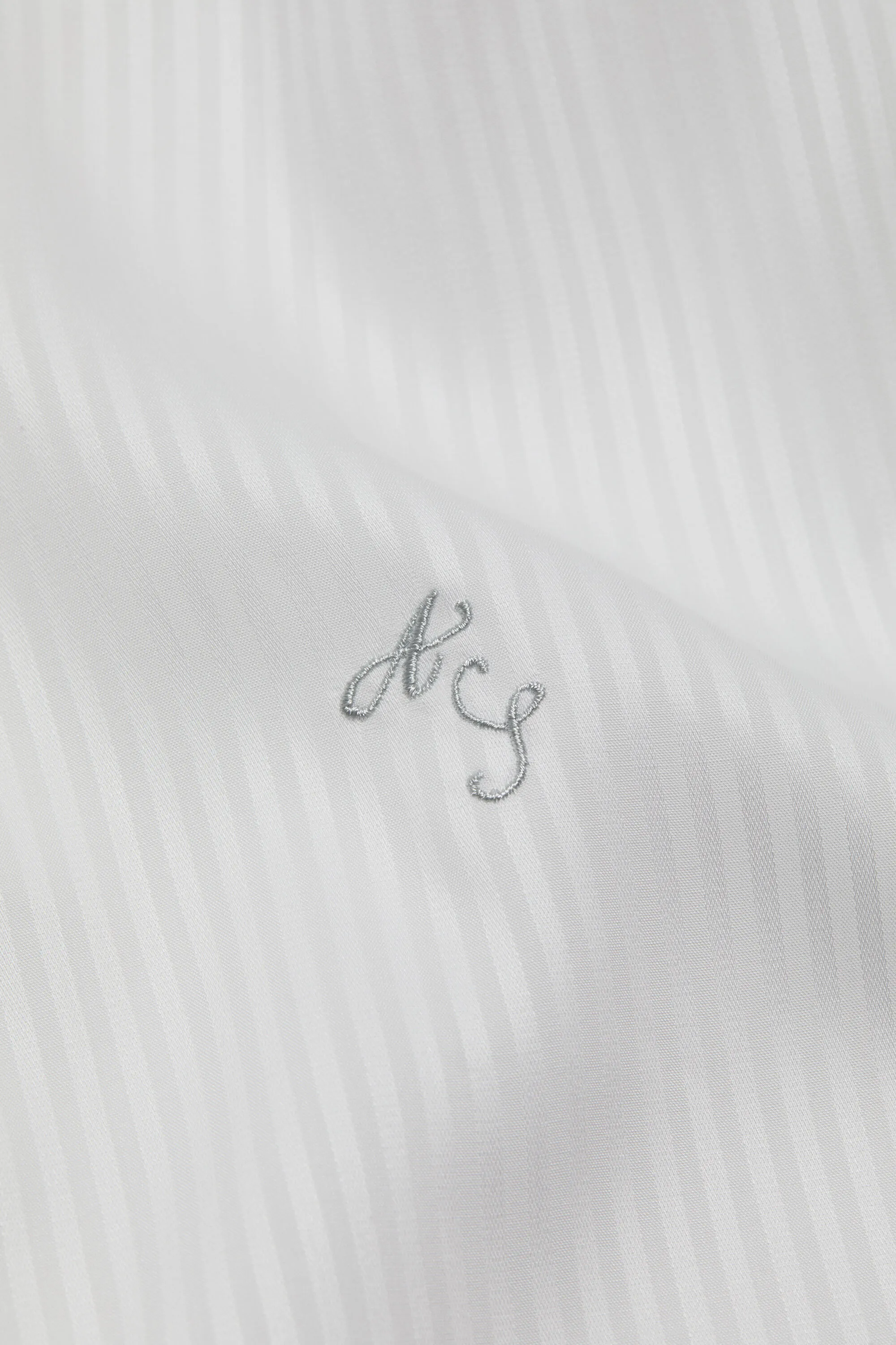 Рубашка с короткими рукавами на пуговицах украшена полосатым узором из струящейся атласной ткани и детально вышитой вышивкой логотипа AS. Обрезайте до свободной посадки и ниже длины бедер.
