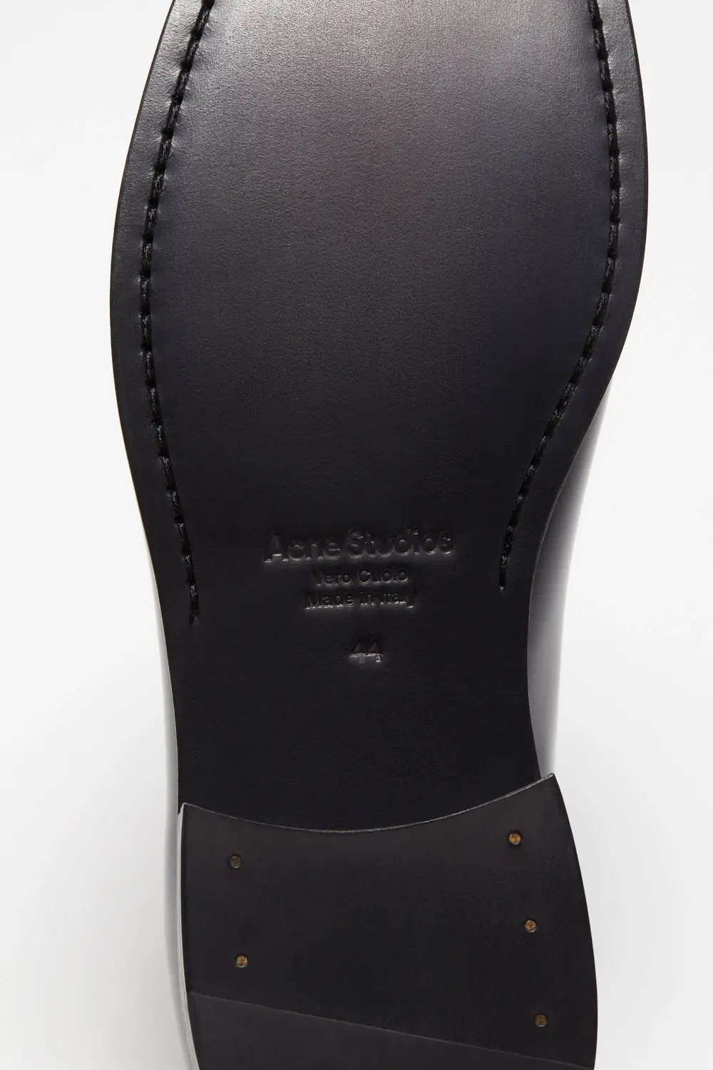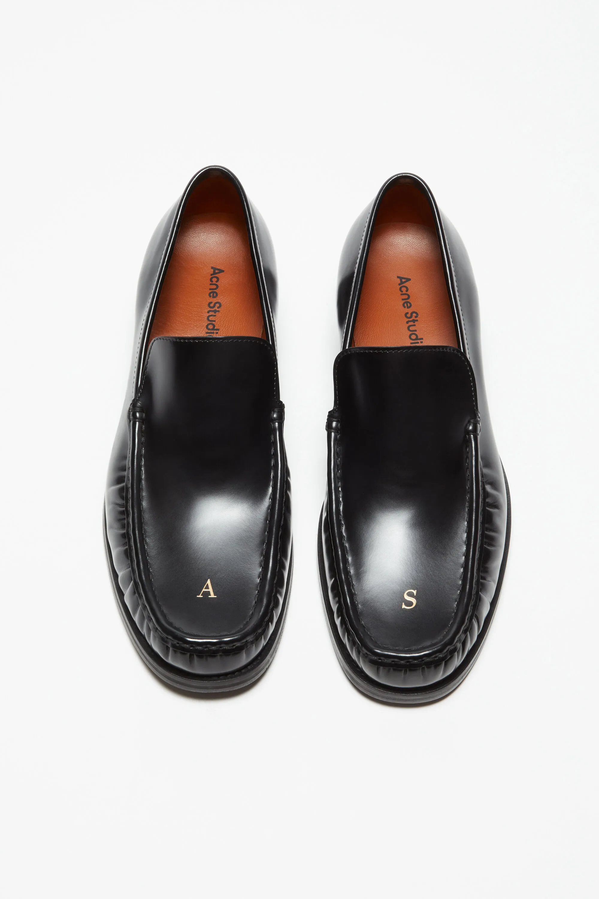 Мокасины изготовлены из кожи с золотой вышивкой инициалов Acne Studios на носке.