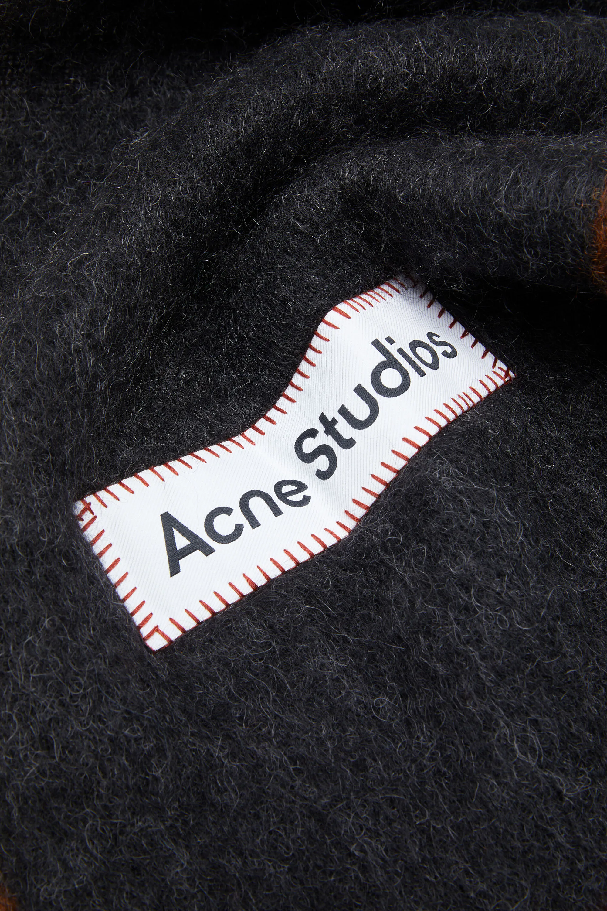 Шарф с бахромой изготовлен из богатой смеси шерсти и мохера, украшен вышитой этикеткой с логотипом Acne Studios и контрастным обрамлением.