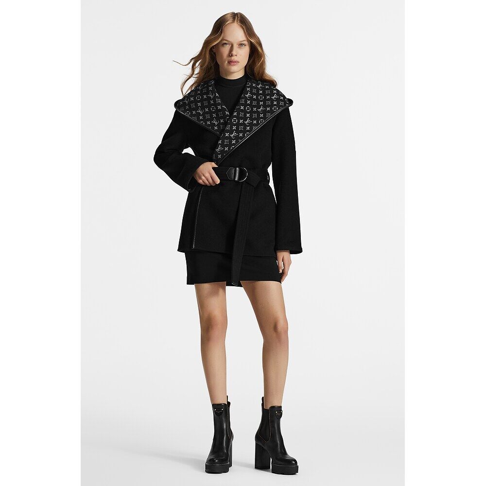 Короткое пальто-бушлат с поясом и запахом Louis Vuitton, черный