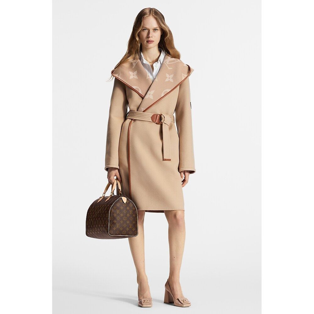 Двубортное пальто с капюшоном и поясом Louis Vuitton, нюдовый 565 264₽