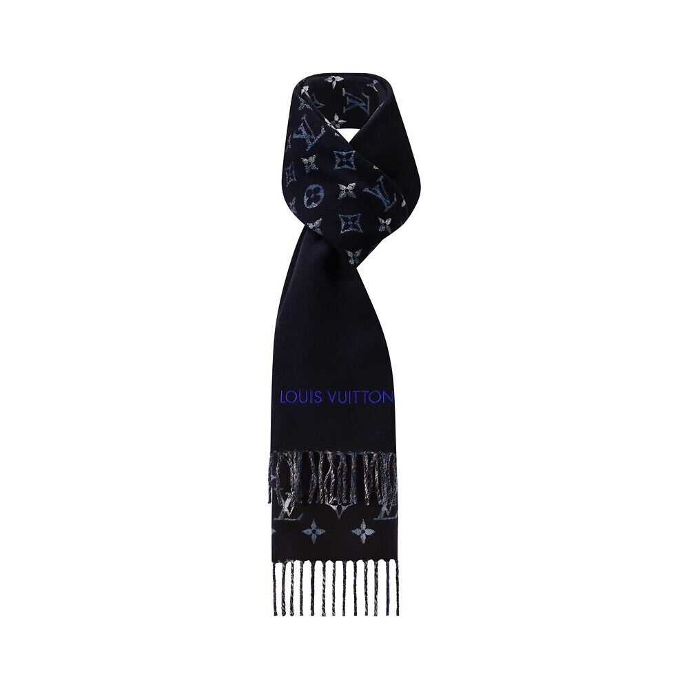 Городской шарф с монограммой и градиентным узором в клетку Louis Vuitton, синий