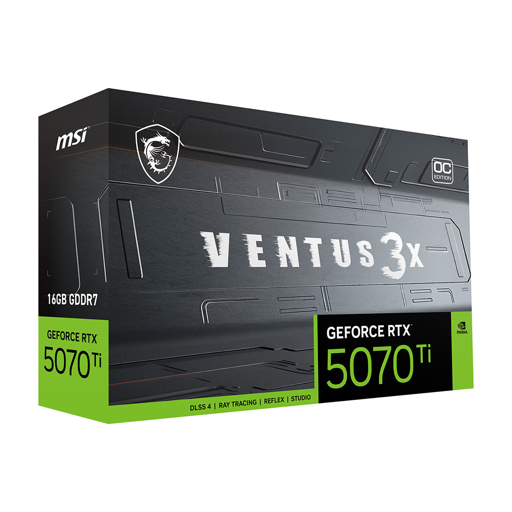 Видеокарта MSI GeForce RTX 5070 Ti VENTUS 3X OC на базе архитектуры NVIDIA Blackwell и DLSS 4. Играйте в свои любимые игры в высоком разрешении и с высокой частотой кадров благодаря 16 ГБ видеопамяти GDDR7 и 256-битному интерфейсу памяти, которые обеспечивают более высокую производительность по сравнению с предыдущим поколением на базе Ada Lovelace.