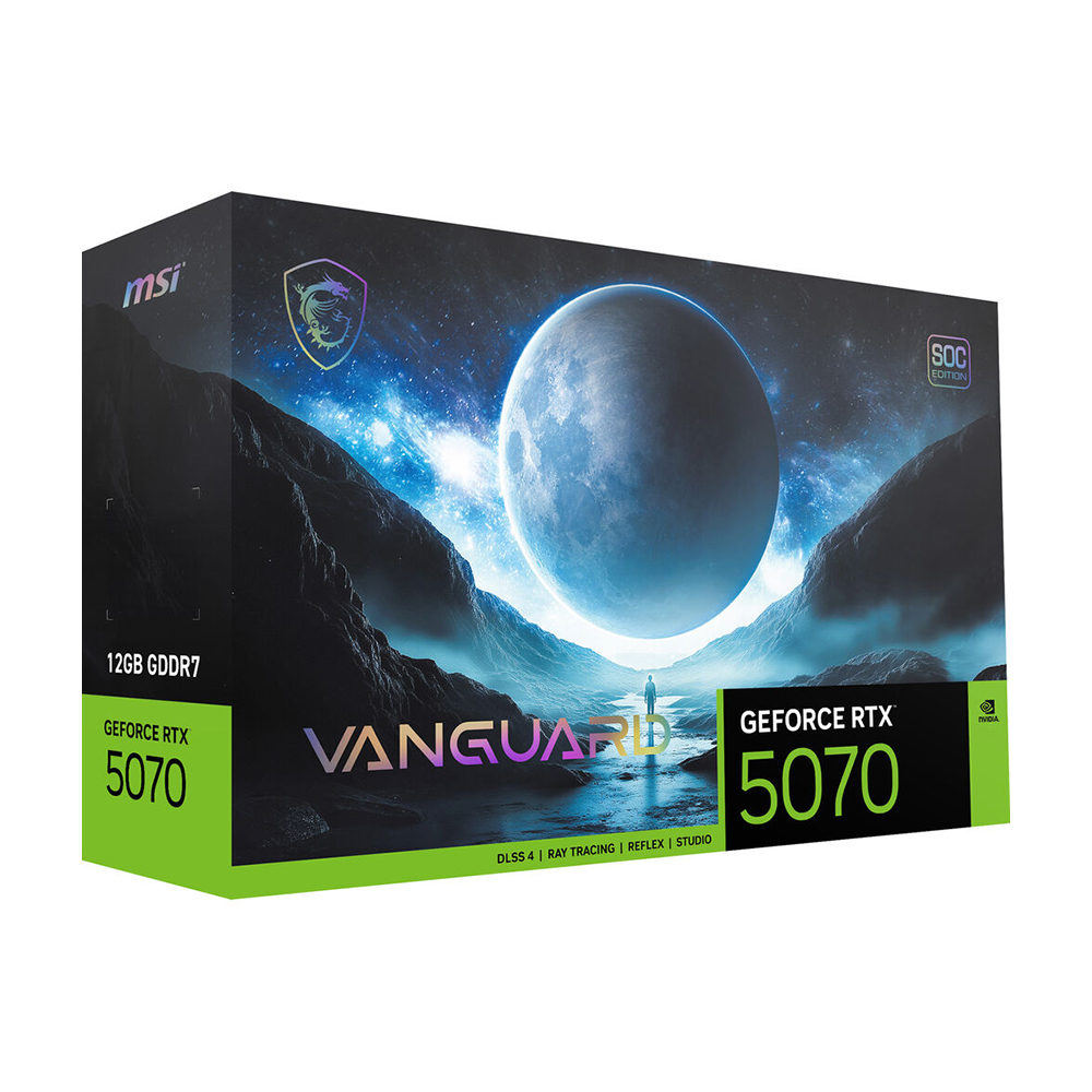 Видеокарта MSI GeForce RTX 5070 VANGUARD SOC на базе архитектуры NVIDIA Blackwell и DLSS 4. Играйте в свои любимые игры в высоком разрешении и с высокой частотой кадров благодаря 12 ГБ видеопамяти GDDR7 и 192-битному интерфейсу памяти, которые обеспечивают более высокую производительность по сравнению с предыдущим поколением на базе Ada Lovelace.