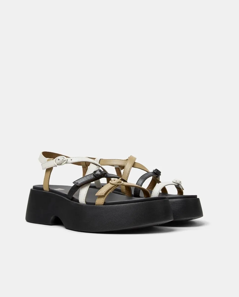 Женские кожаные босоножки на платформе Tasha Camper, бежевый