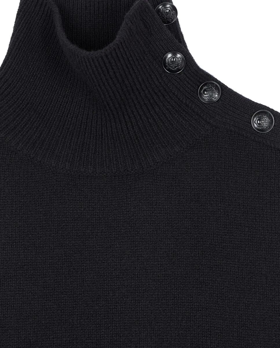 Женский шерстяной свитер Kooples, прямого кроя, воротник-труба с классической застежкой на пуговицы, рукава полной длины, края в рубчик.