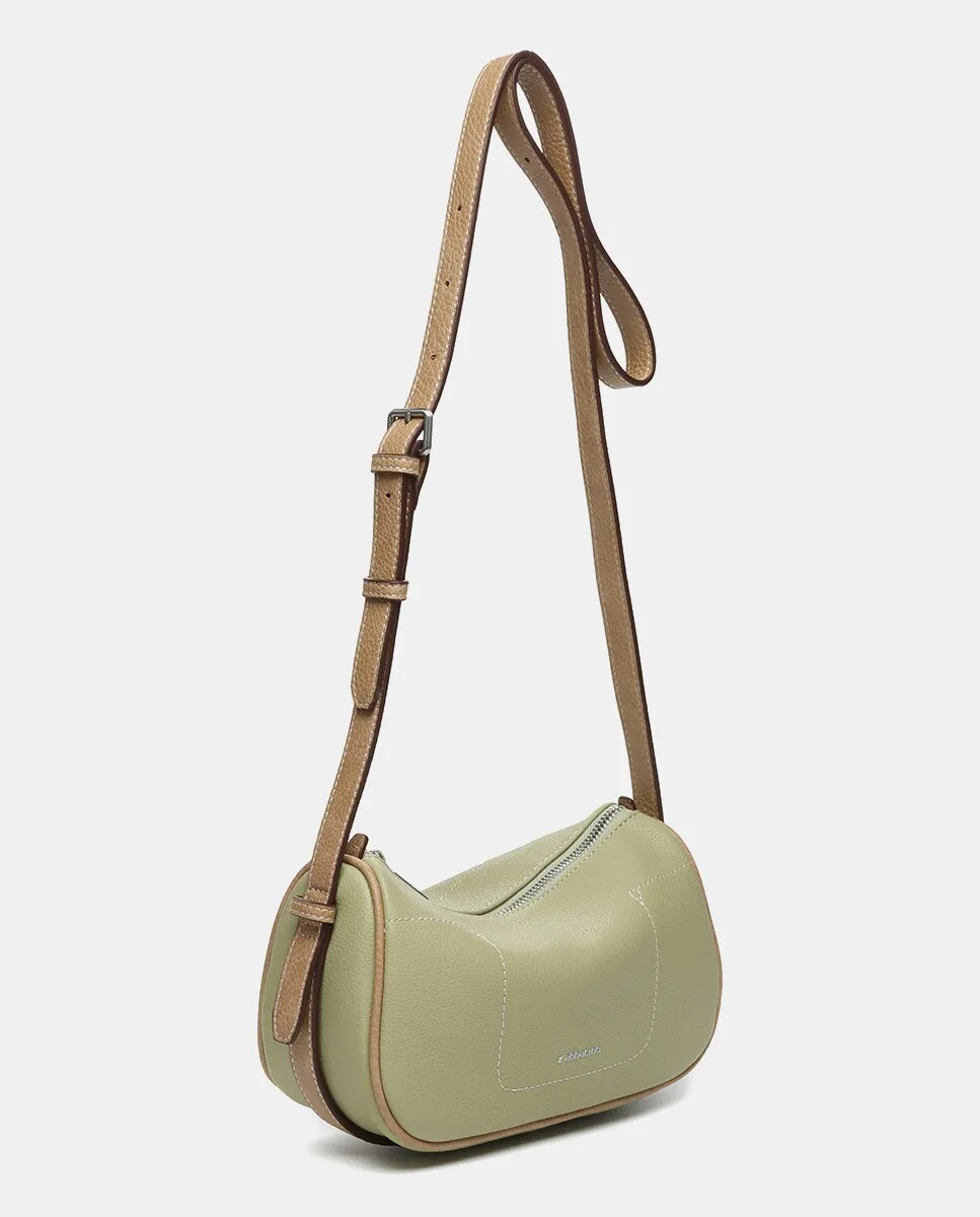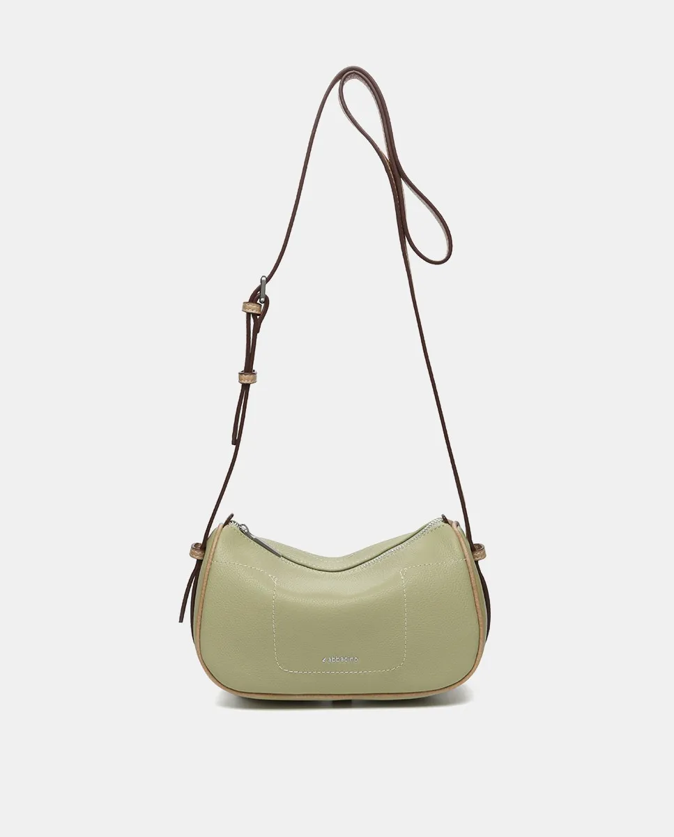 Сумка через плечо из переработанных материалов. Его простой и минималистичный дизайн выполнен в летних тонах. Имеет удобную регулируемую ручку и детали цвета кожи. Внутри подкладка и несколько отделений. Верхняя застежка — молния, спереди расположен логотип бренда.