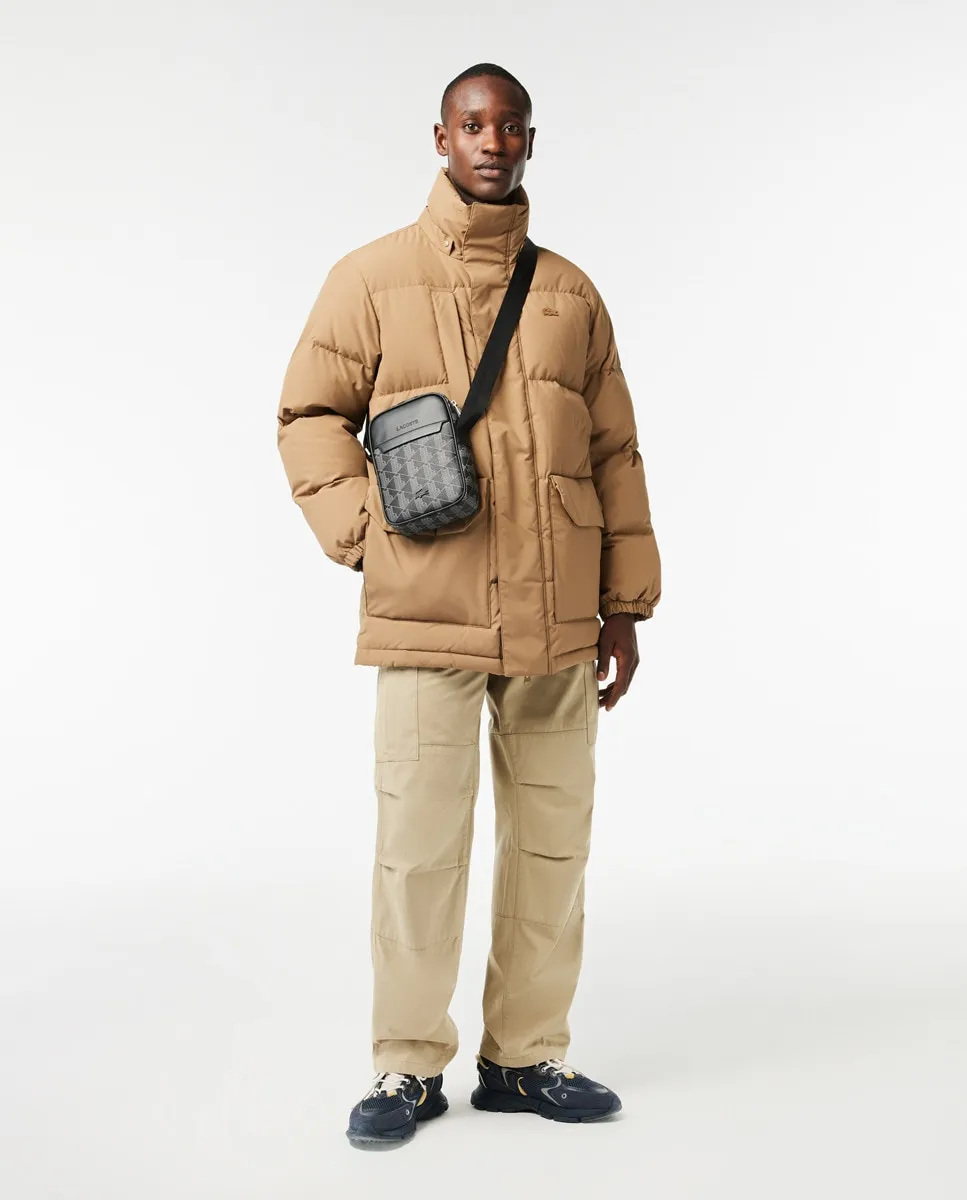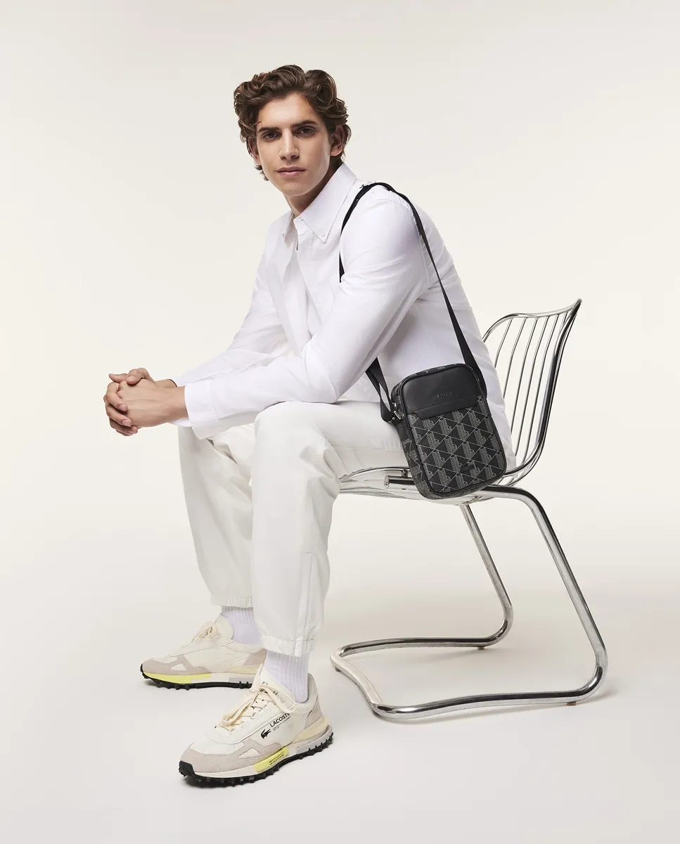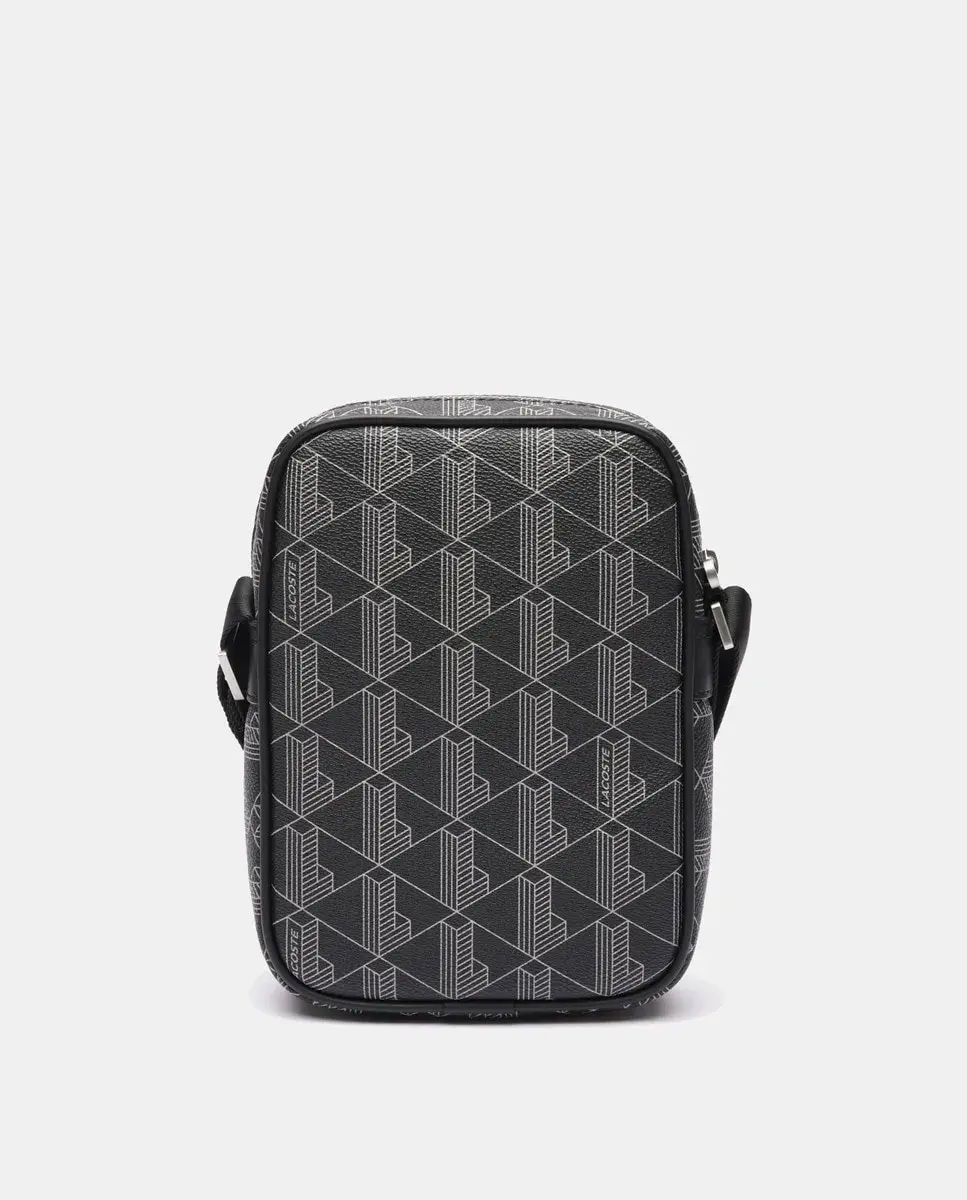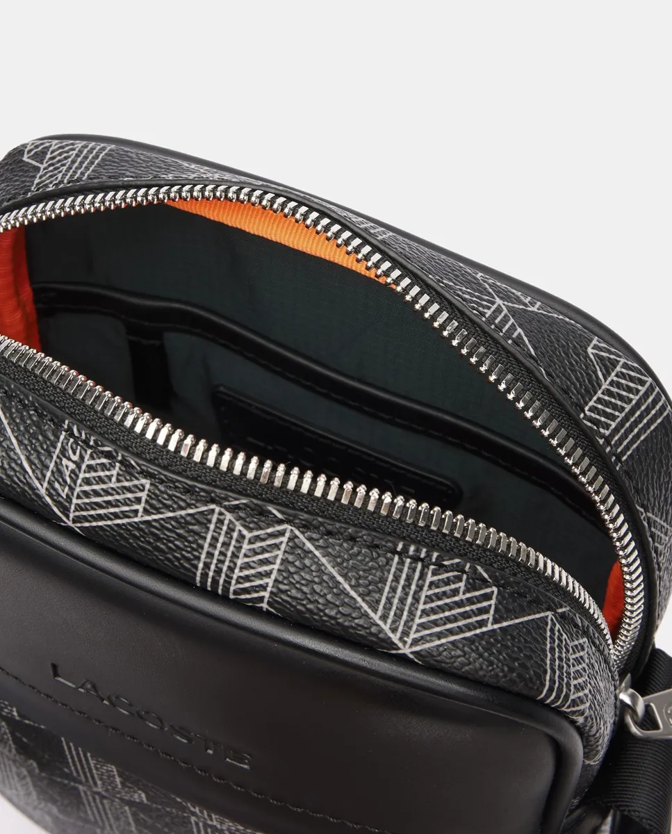 Семейная сумка через плечо Blend с принтом монограммы Lacoste и регулируемым ремнем от 140 до 75 см. Спереди находится матово-черный металлический крокодил. Имеет плоский внутренний карман и кольцо для ключей.