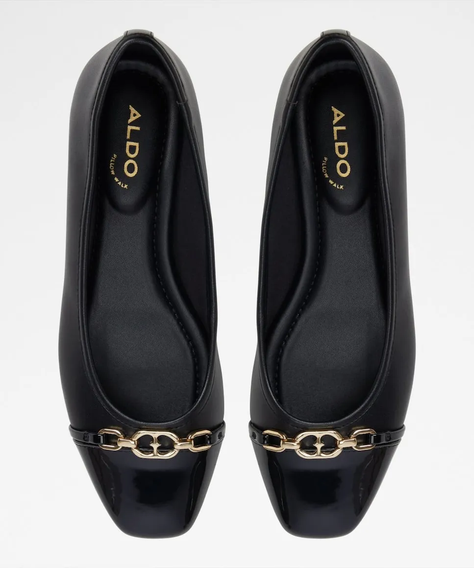 Женские балетки KRISHELLE с квадратным носком и черным лаковым покрытием, созданные ALDO, станут идеальной моделью для завершения вашего образа.